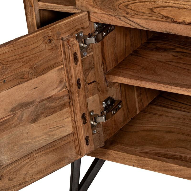 Aparador con 4 cajones de madera y patas de metal en natural y negro 94x145x40 cm