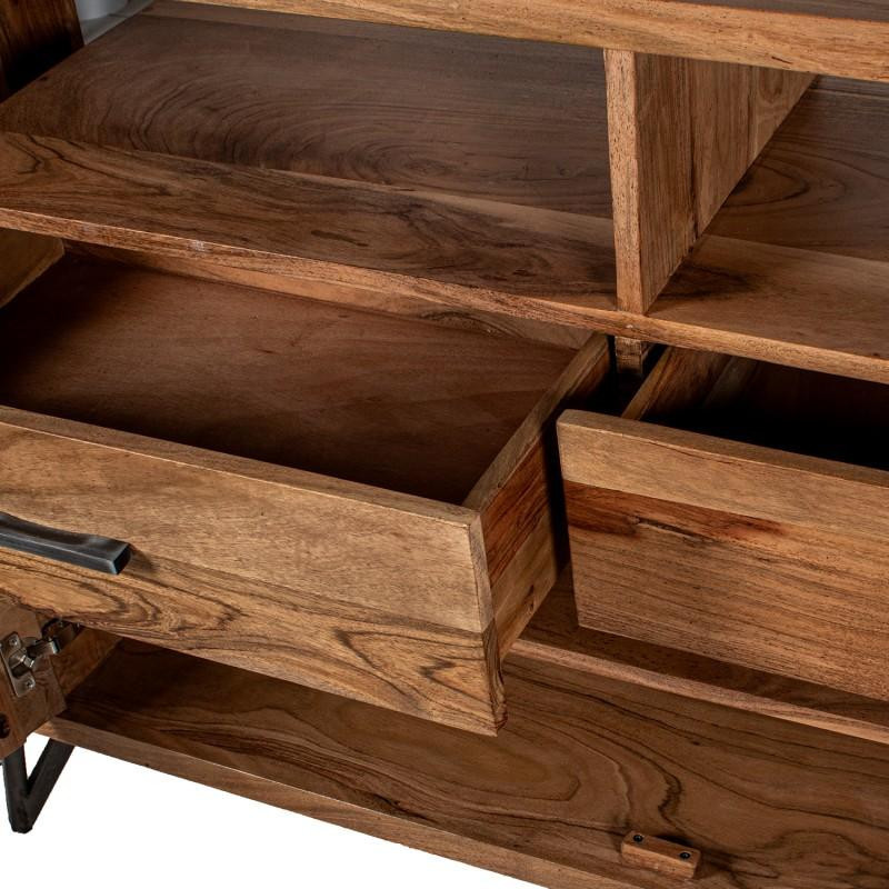 aparador con 4 cajones de madera y patas de metal en natural y negro 145x40x94cm