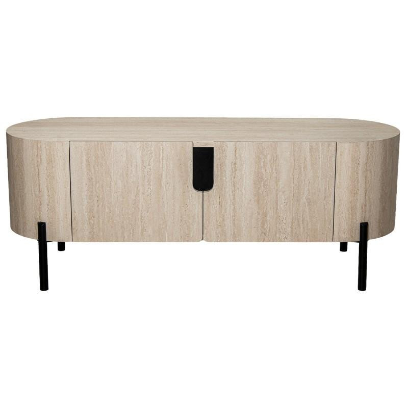 Mesa de tv con 2 puertas de madera con patas de metal en natural y negro. Medidas: 120x40x45cm