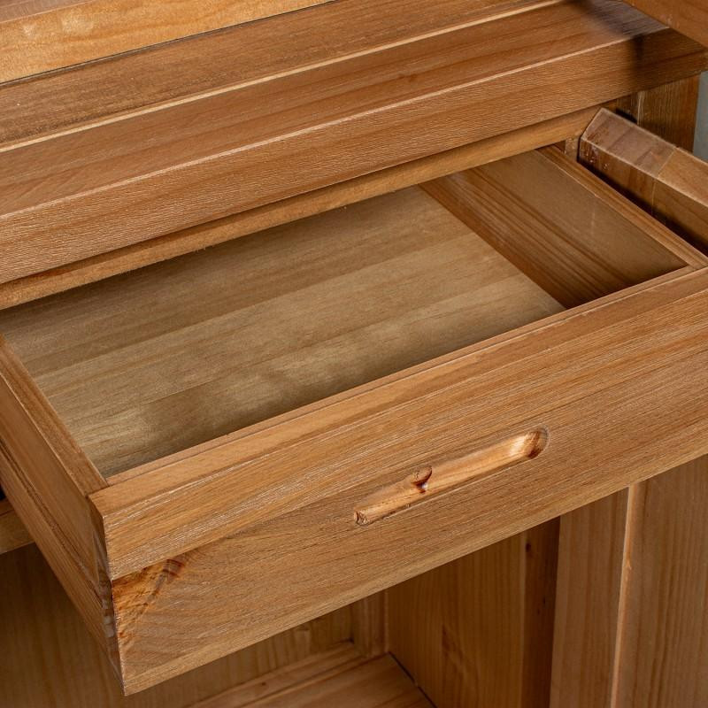 Armario vitrina con 4 puertas y 2 cajones internos de madera en natural 110x90x30 cm