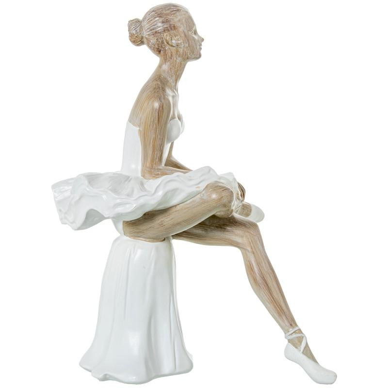 Figura bailarina sentada de resina blanco y natural 28x15x22 cm