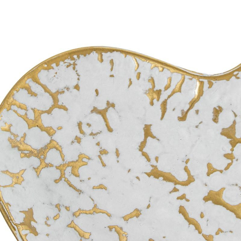 Set de 3 bandejas con formas irregulares de metal dorado y blanco 7x60x45 cm