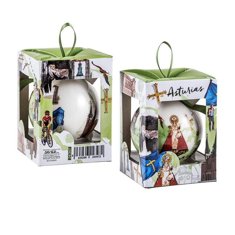 Set 12 bolas de navidad Virgen Covadonga Asturias. Medidas: Ø 7.5 cm
