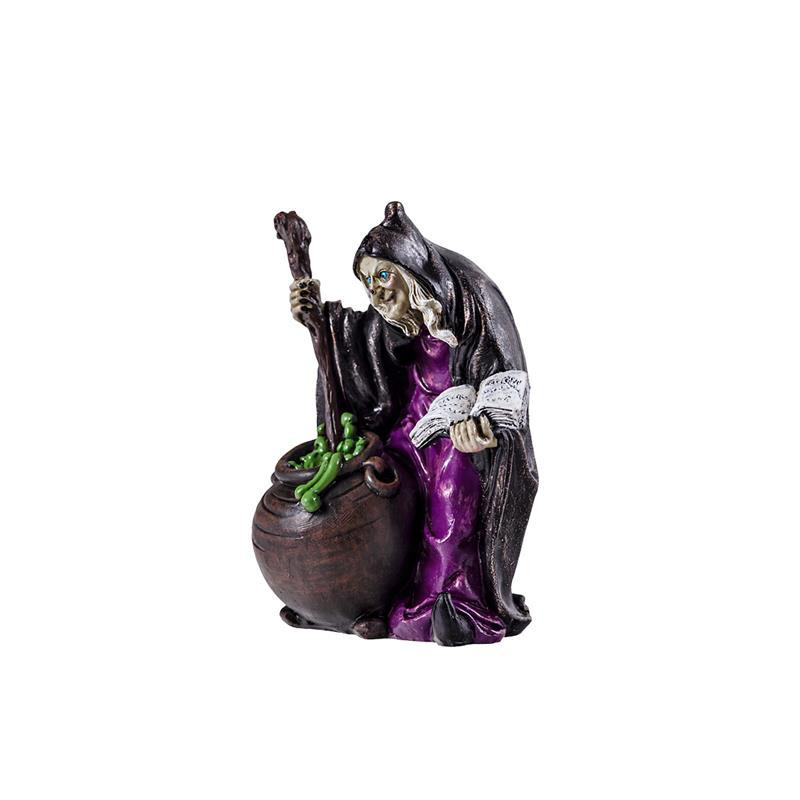 Figura bruja haciendo pocima de resina pintada a mano 11 cm