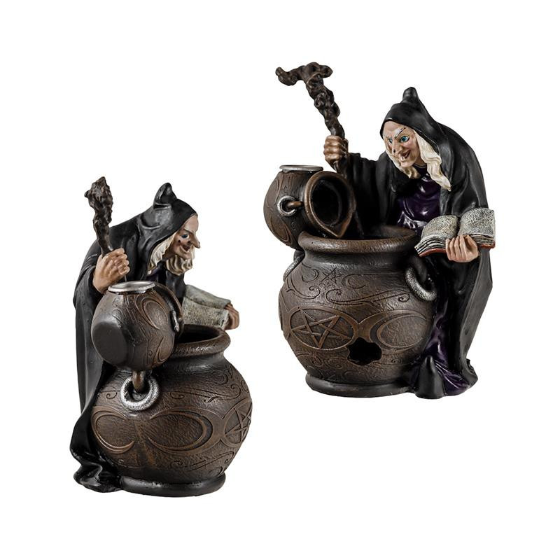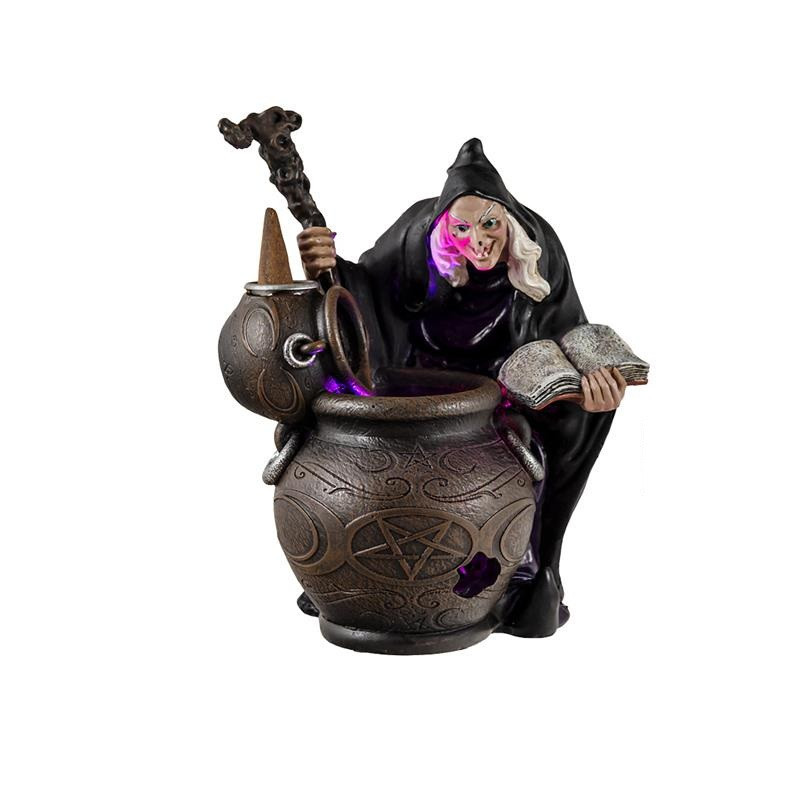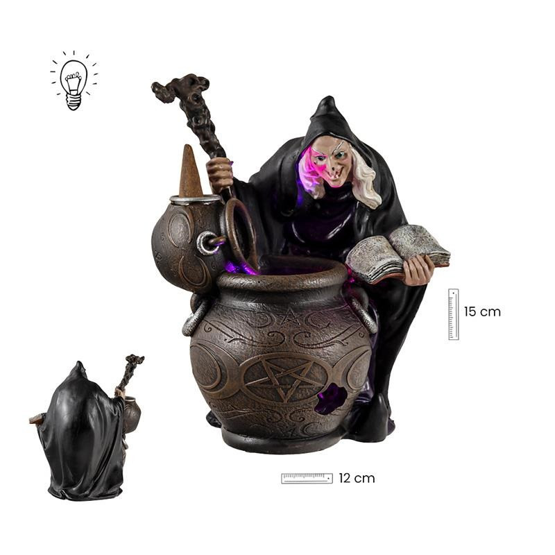 Figura bruja porta incienso de resina pintado a mano 12x15 cm
