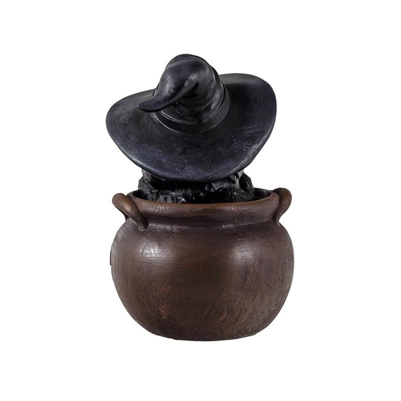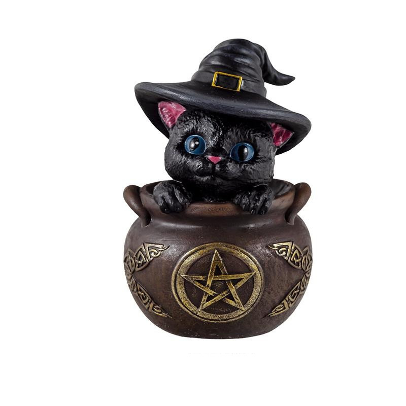 Figura gato brujo dentro de un caldero de resina pintado a mano 7x10 cm