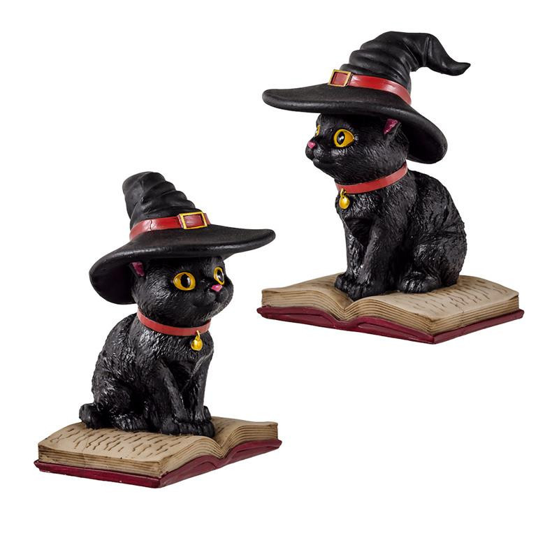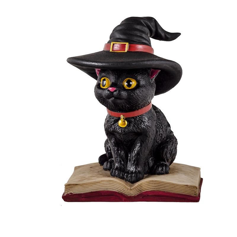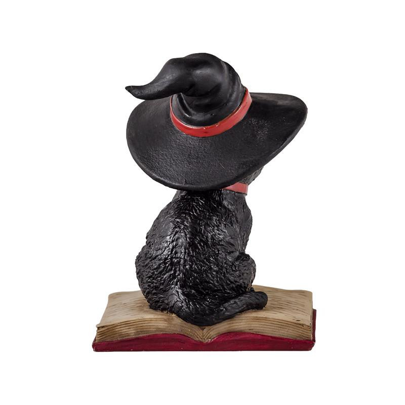 Figura gato brujo sobre un libro de resina pintado a mano 8x11 cm