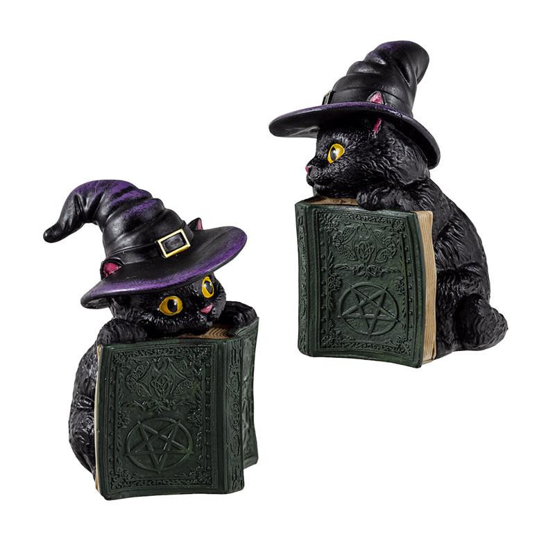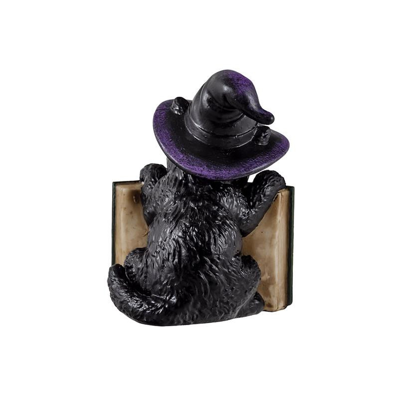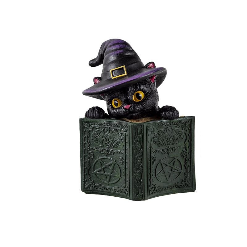 Figura gato brujo con un libro de resina pintado a mano 9x11 cm