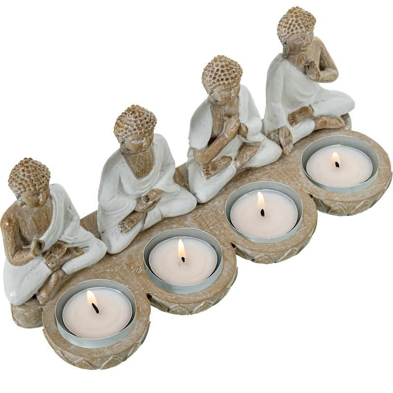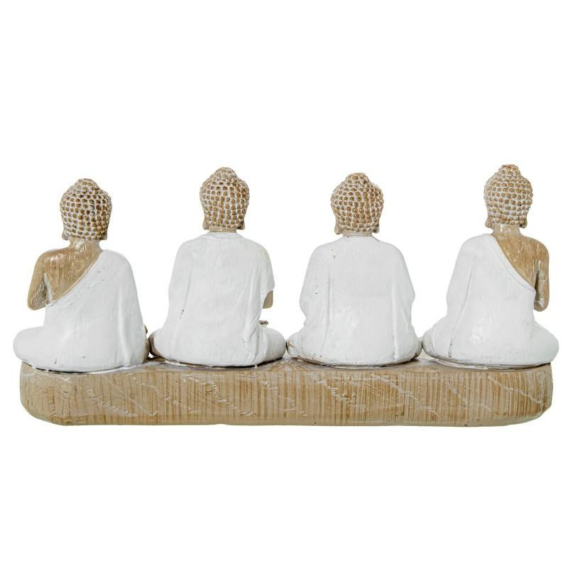 Figura de 4 budas con palmatorias de resina blanco y natural 11x22x8 cm