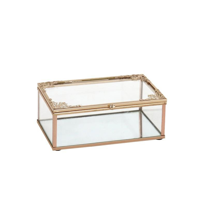 Caja rectangular con tapa de cristal y metal en dorado 15x11x5.3 cm