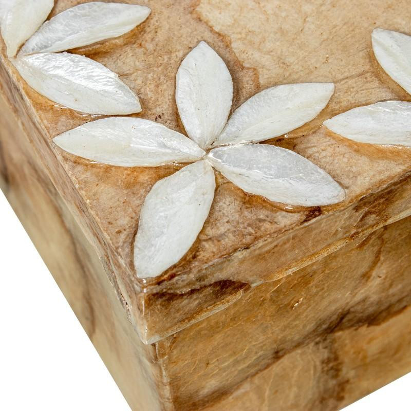 Set de 2 cajas rectangulares de nacar con flores en relieve en natural y tostado. Medidas: 21x14x10cm
