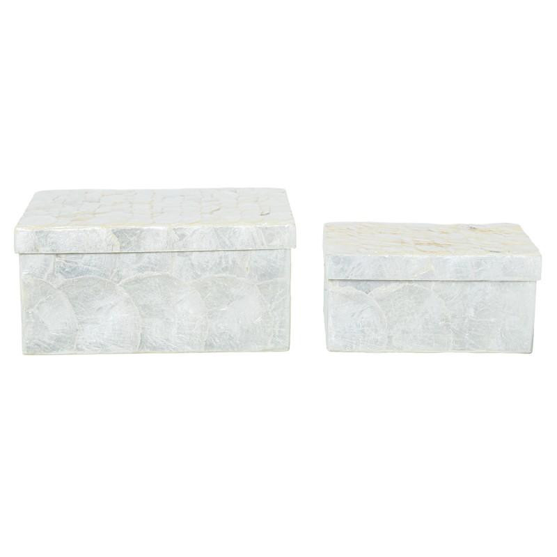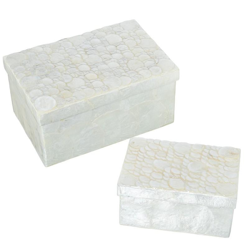 Set de 2 cajas cuadradas de nacar con circulos en natural. Medidas: 21x14x10cm