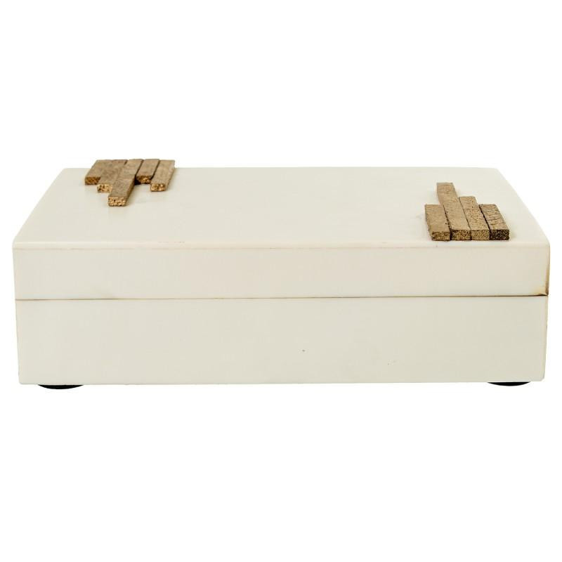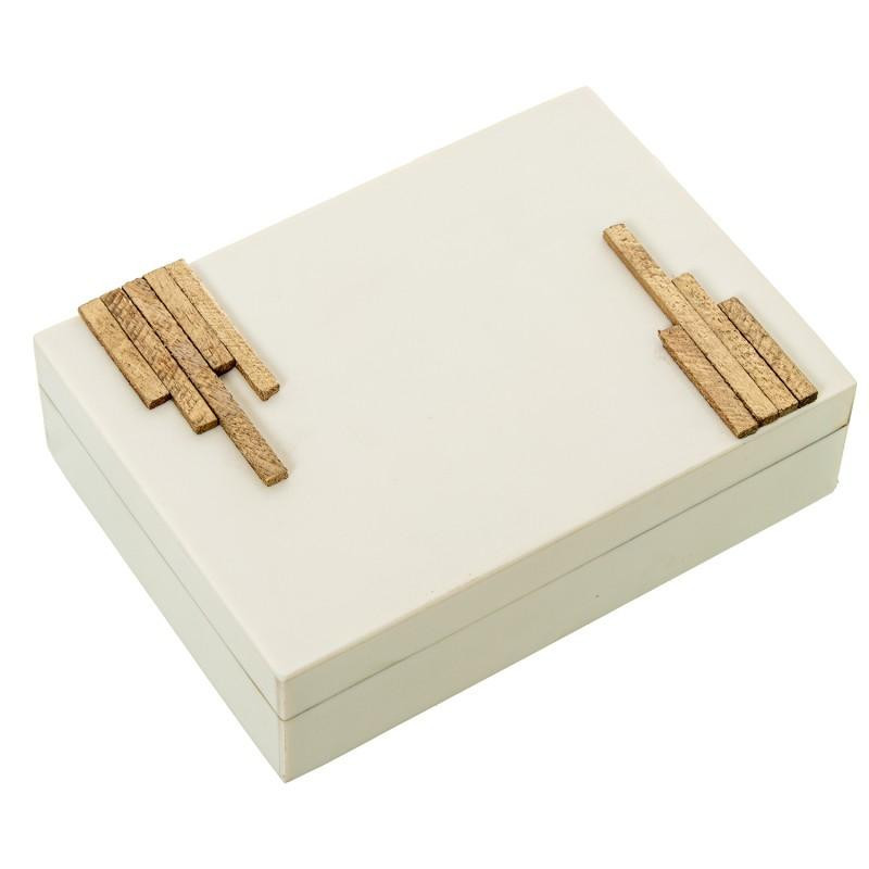 Caja rectangular de resina caja con base madera blanco hueso y natural. Medidas: 18x5x13 cm