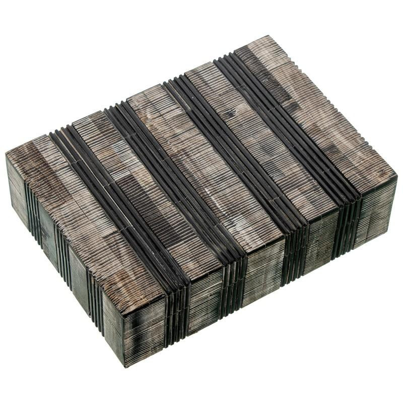 Caja rectangular de resina con base de madera gris y negro. Medidas: 18x5x13 cm