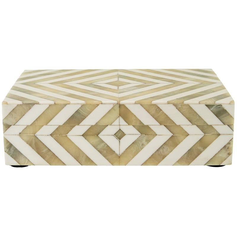 Caja rectangular de resina con base de madera blanco hueso y beige. Medidas: 18x5x13 cm