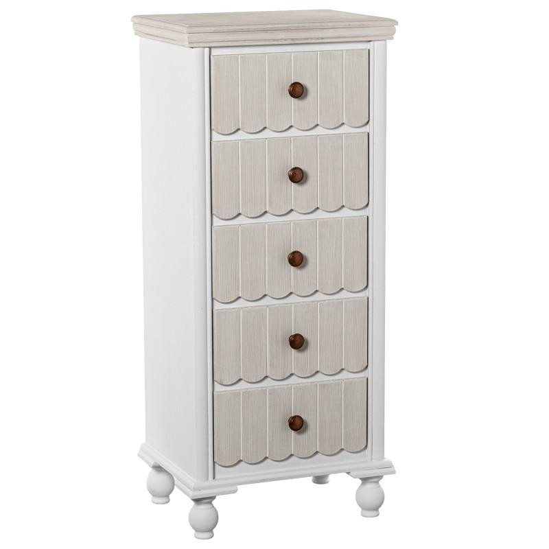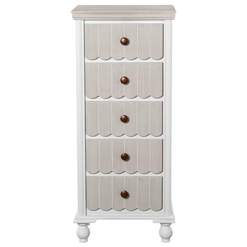Sinfonier con 5 cajones de madera dm en blanco y crema. Medidas: 40x30x93 cm
