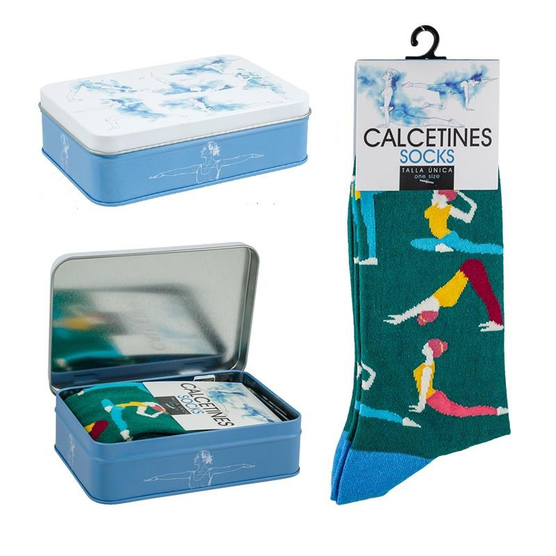 Calcetines de yoga verde con estuche de lata 10x14x4 cm