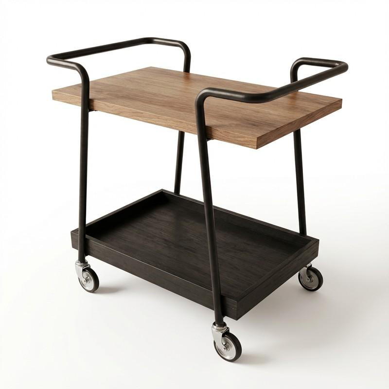Camarera con 1 cajon y 1 estante de madera y metal en natural y negro 60x56x34 cm