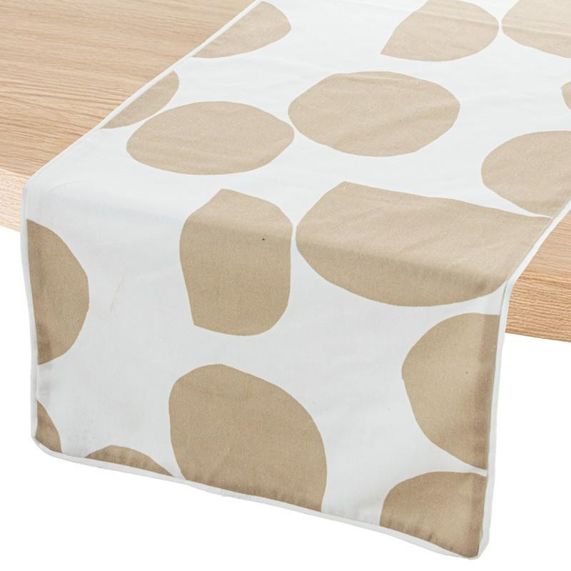 Camino de mesa de poliester y algodón decorado en beige y blanco. Medidas: 0.5x45x160cm