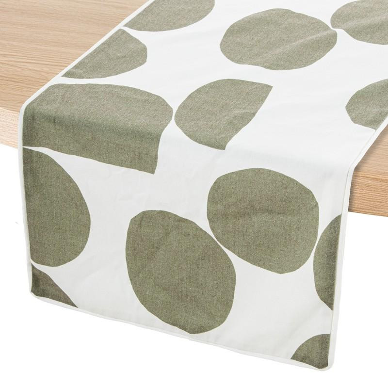 Camino de mesa de poliester y algodón decorado en verde y blanco. Medidas: 0.5x45x160cm