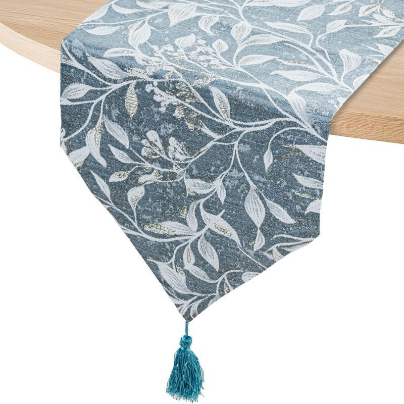 Camino de mesa de poliester decorado en azul 0.5x180x30 cm