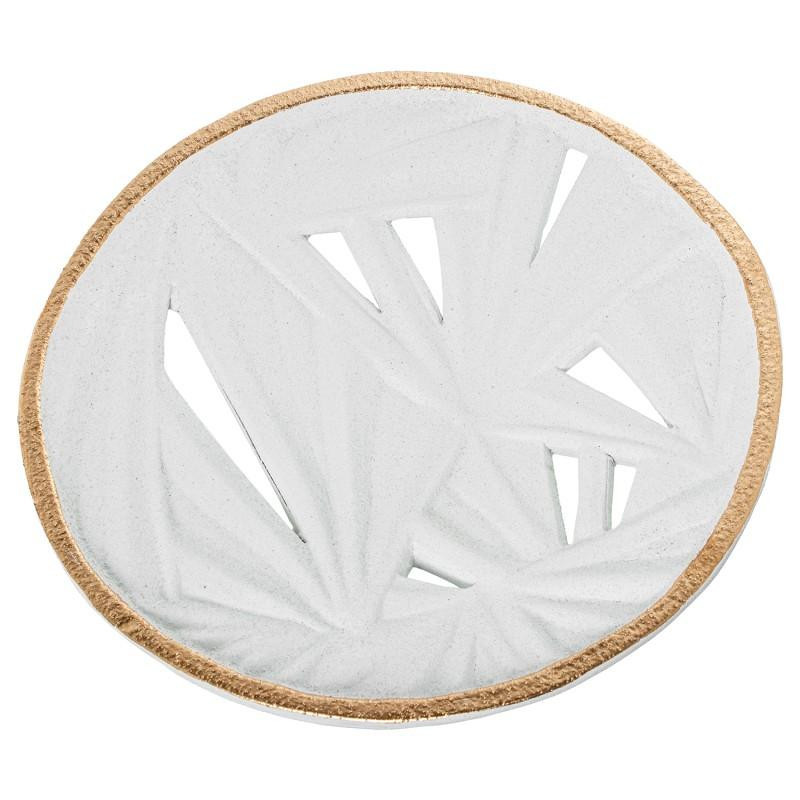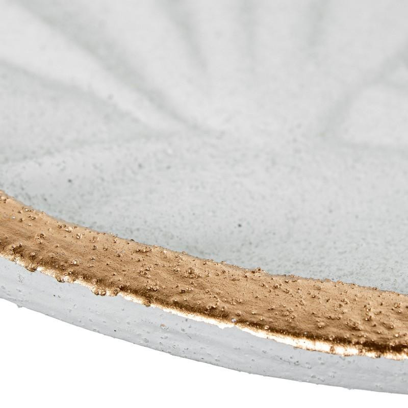 Centro palmera de mesa redondo de ceramica en blanco arena y dorado 5x36x36 cm