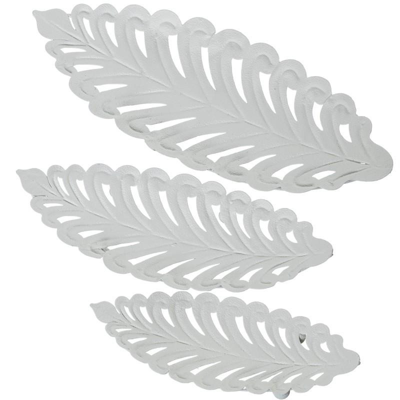 Set de 3 centros con forma de hojas de metal blanco 4x37x15 cm
