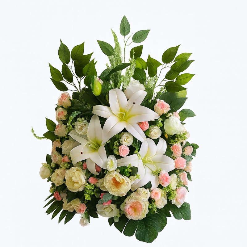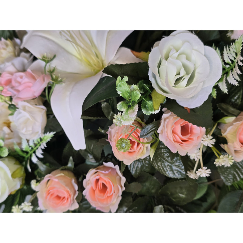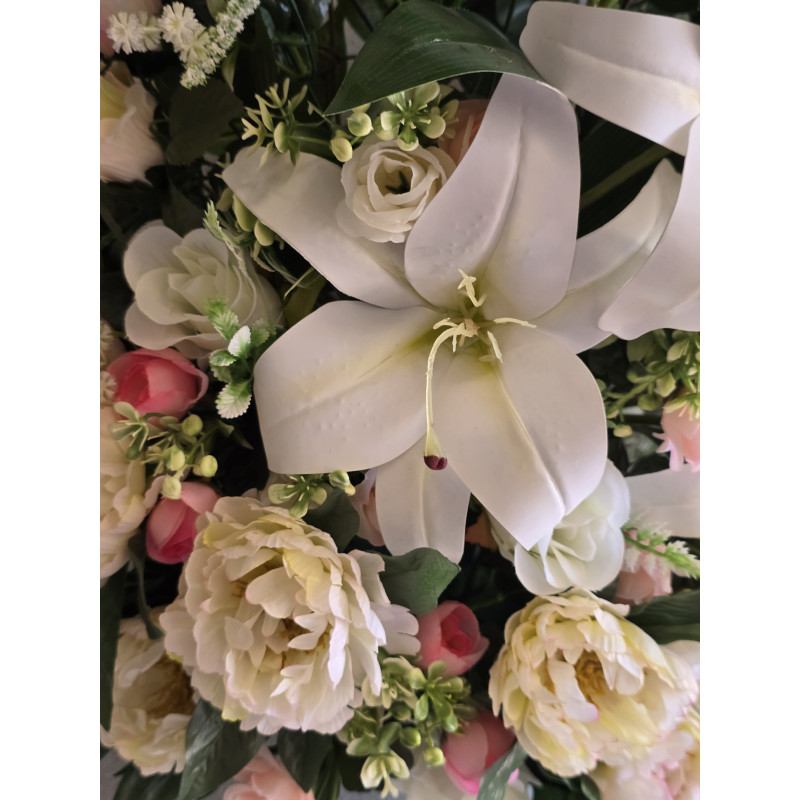 Centro de flores artificiales para bodas, iglesias, cementerios con rosas beige y rosas 72x62x34 cm