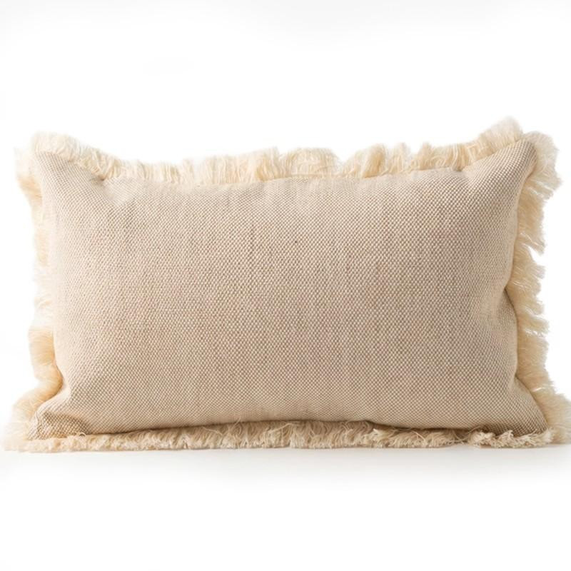 Cojin rectangular de poliester y algodón con flecos y relleno en crudo. Medidas: 12x50x30cm