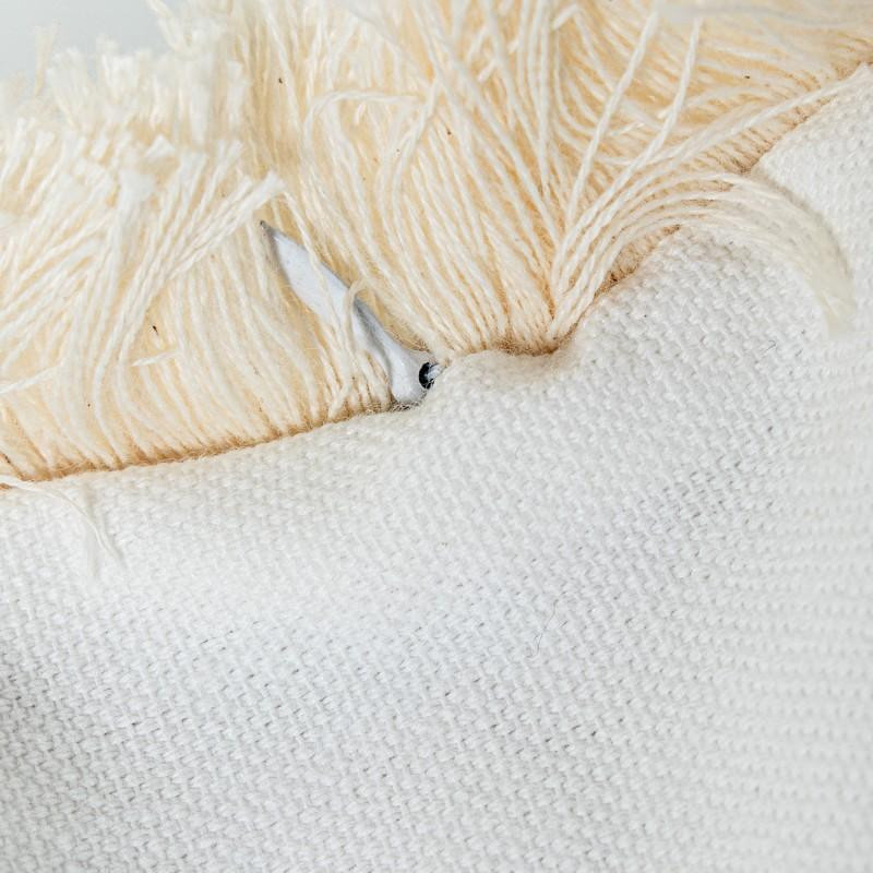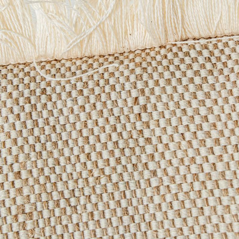 Cojin rectangular de poliester y algodón con flecos y relleno en crudo 12x50x30 cm