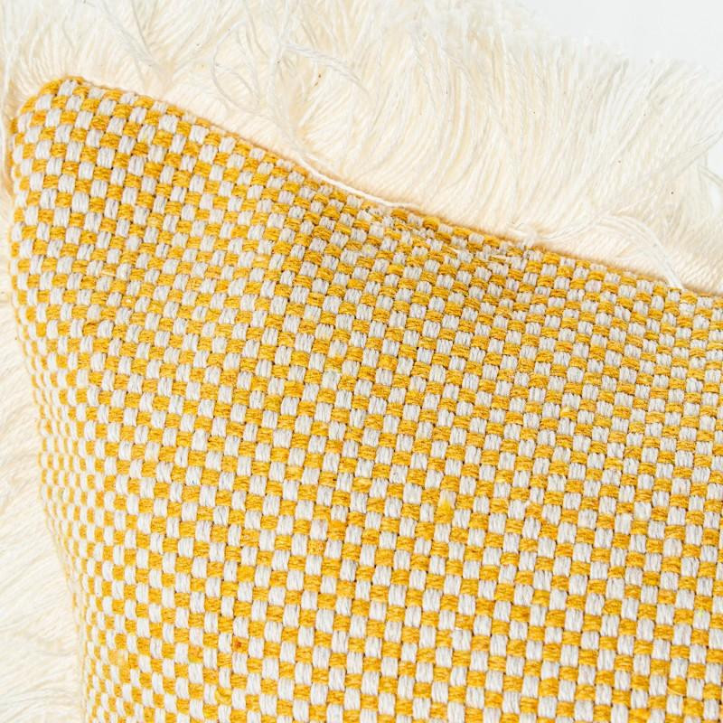Cojin cuadrado de poliester y algodón con flecos y relleno en beige. Medidas: 12x45x45cm