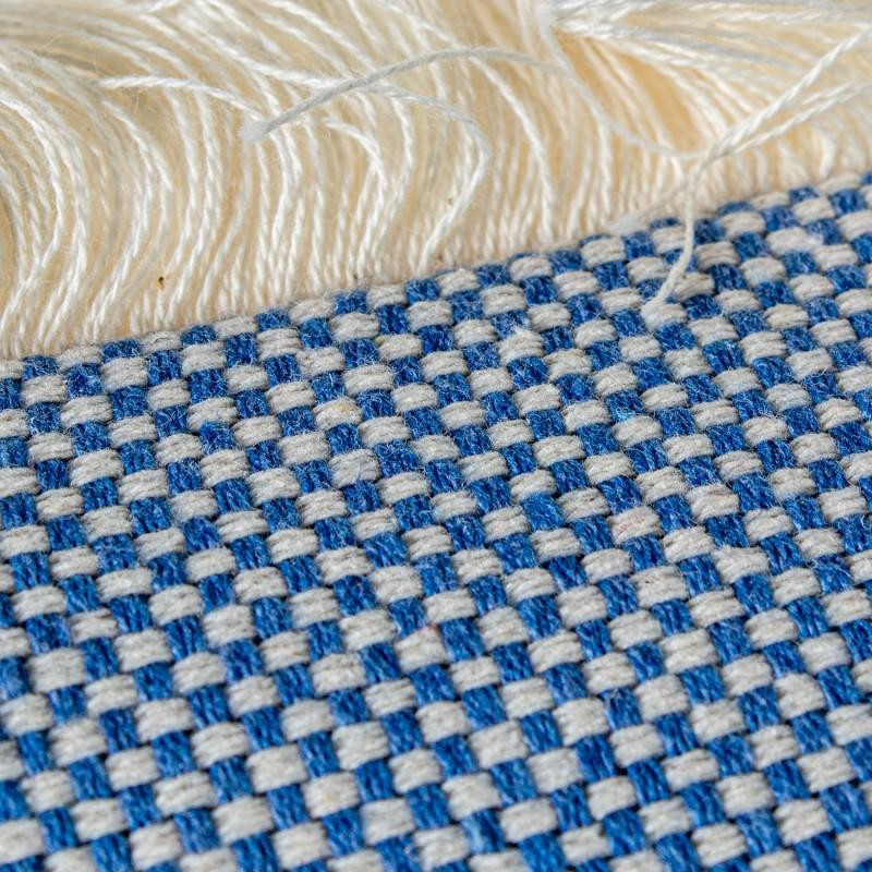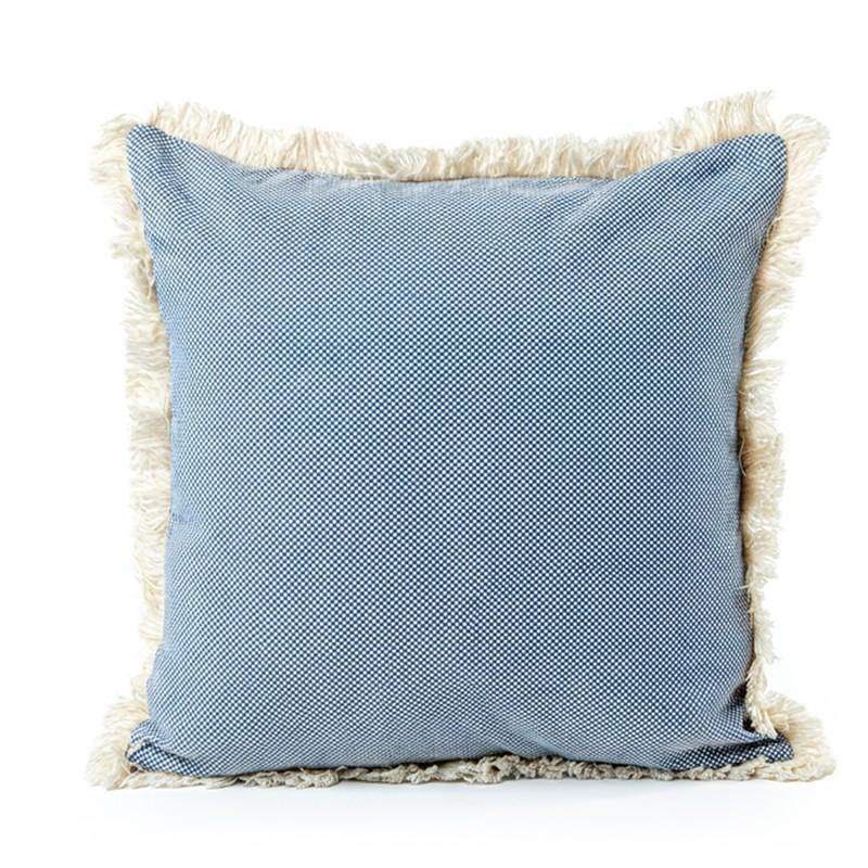 Cojin cuadrado de poliester y algodón con flecos y relleno en celeste. Medidas: 12x45x45cm