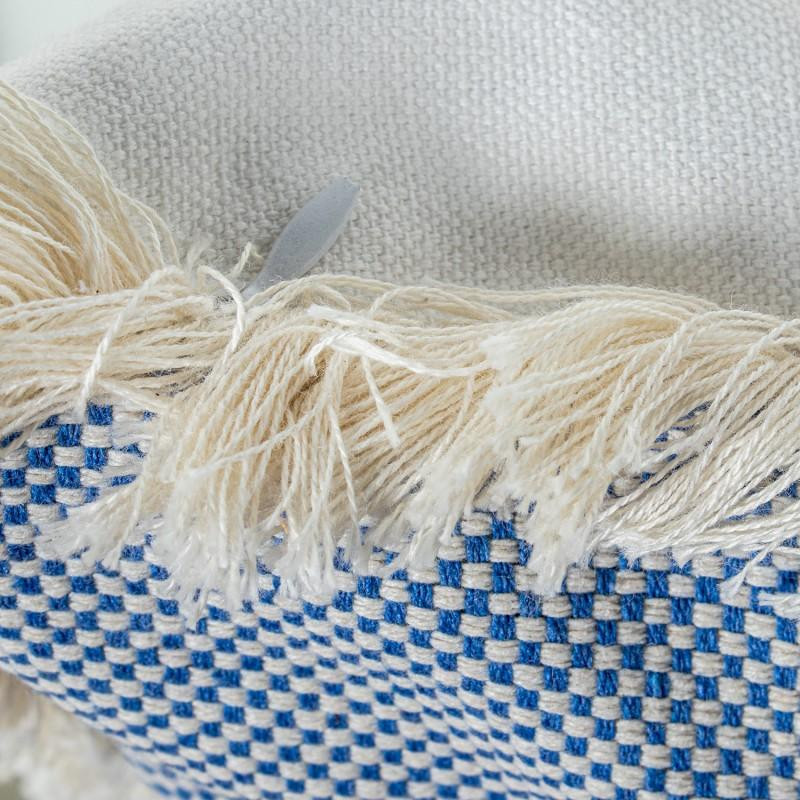 Cojin cuadrado de poliester y algodón con flecos y relleno en celeste 12x45x45 cm