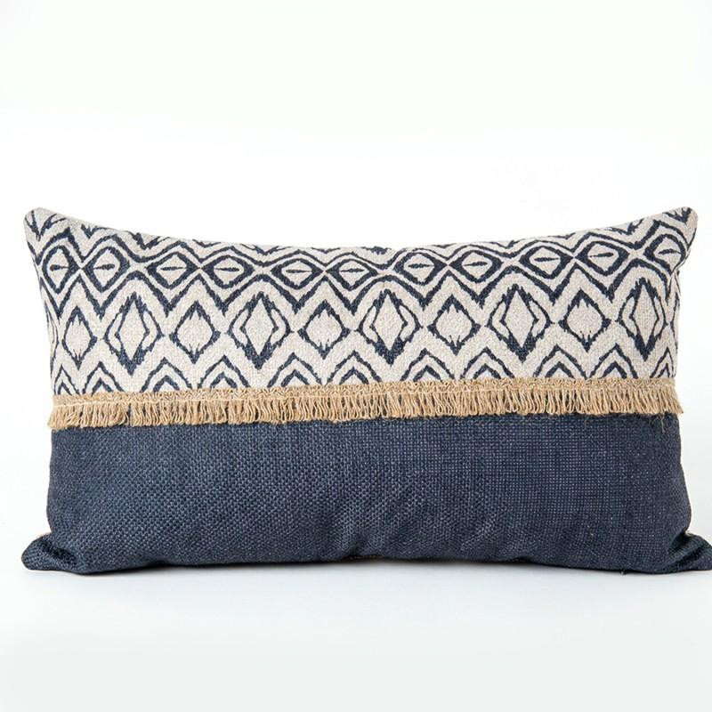 Cojin rectangular de poliester con relleno decorado en negro y blanco 12x50x30 cm