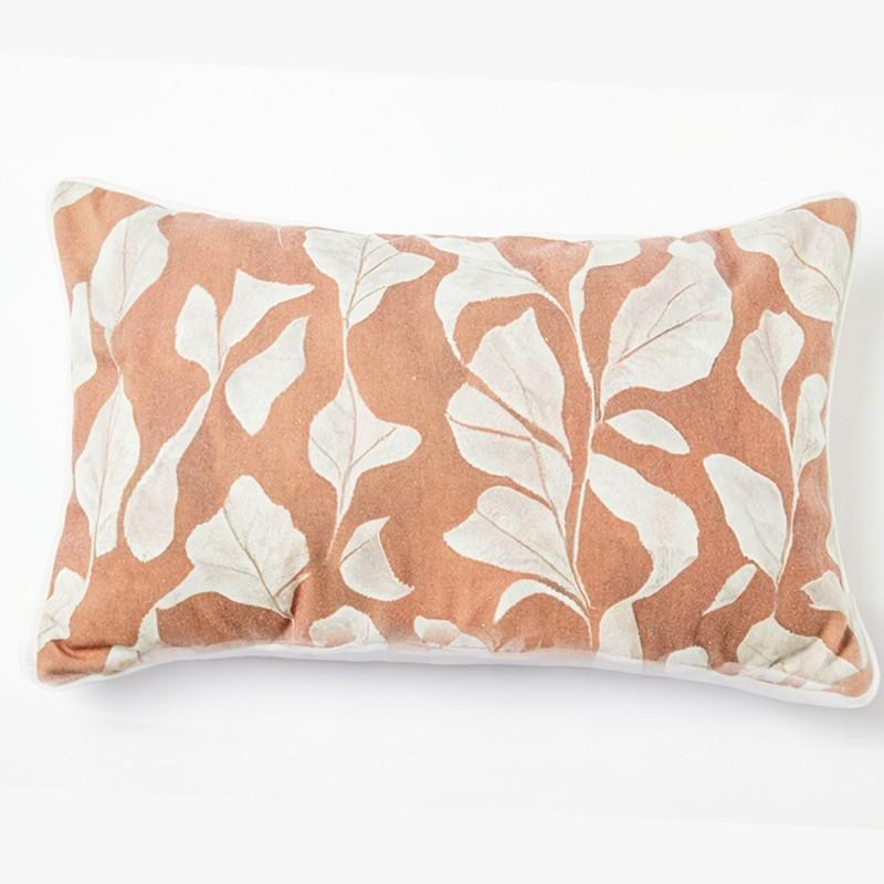 Cojin rectangular de poliester y algodón decorado con relleno en rosa y blanco 12x50x30 cm