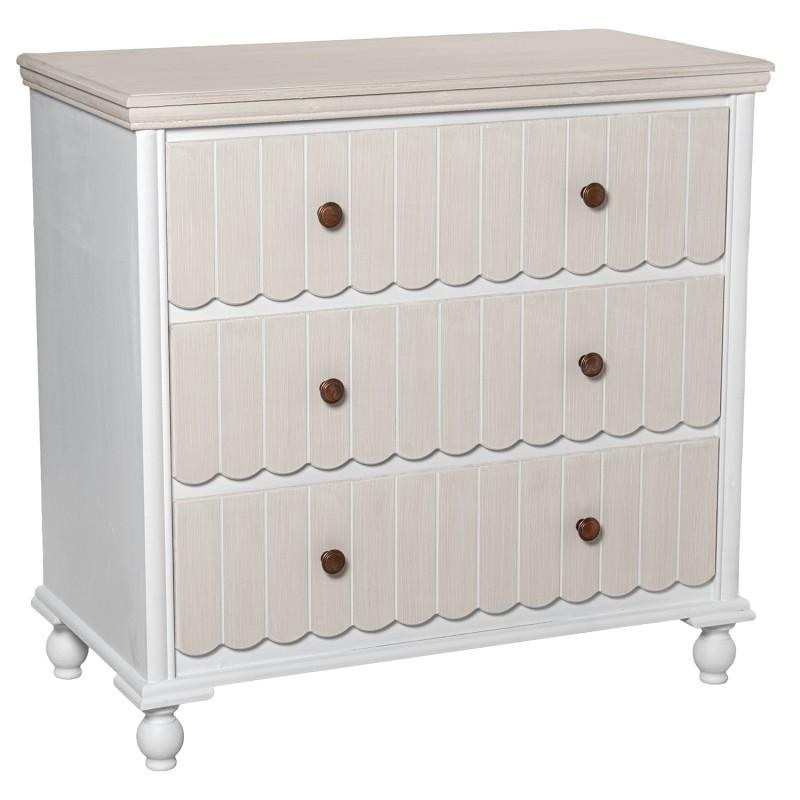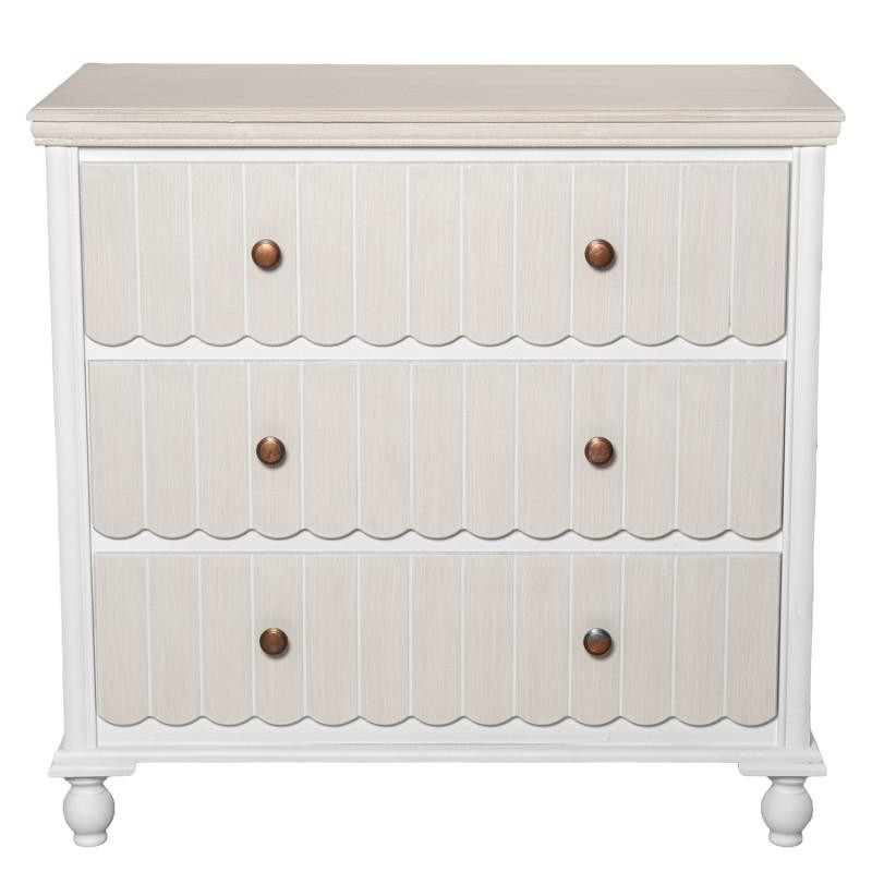 Comoda con 3 cajones de madera dm en blanco y crema. Medidas: 80x40x78 cm