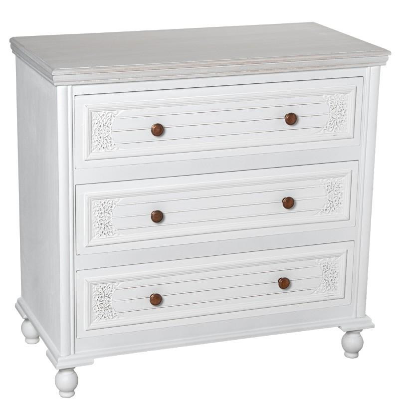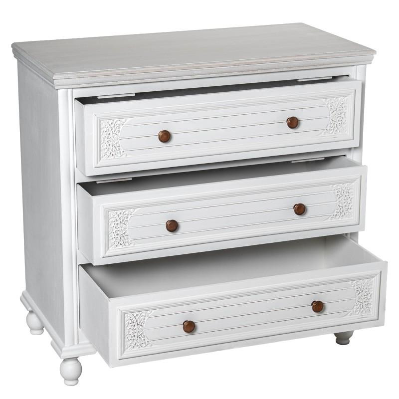 Comoda con 3 cajones de madera dm en blanco y crema 78x80x40 cm
