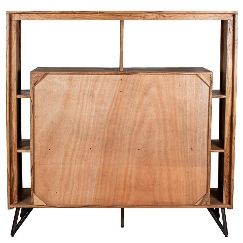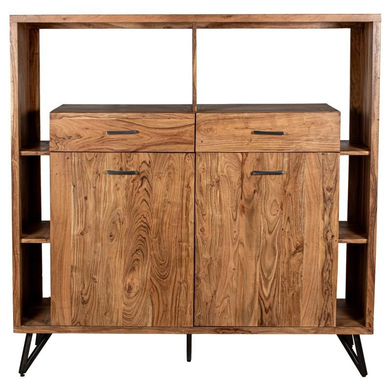 Mesa de entrada con 2 cajones y 2 puertas de madera y patas de metal en natural y negro 150x145x40 cm