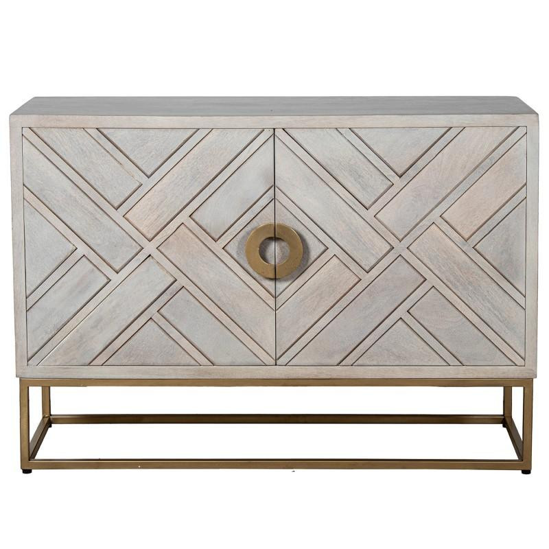 Mueble de entrada de madera con 2 puertas y patas de metal en blanco y dorado 83x120x42 cm