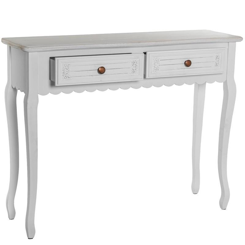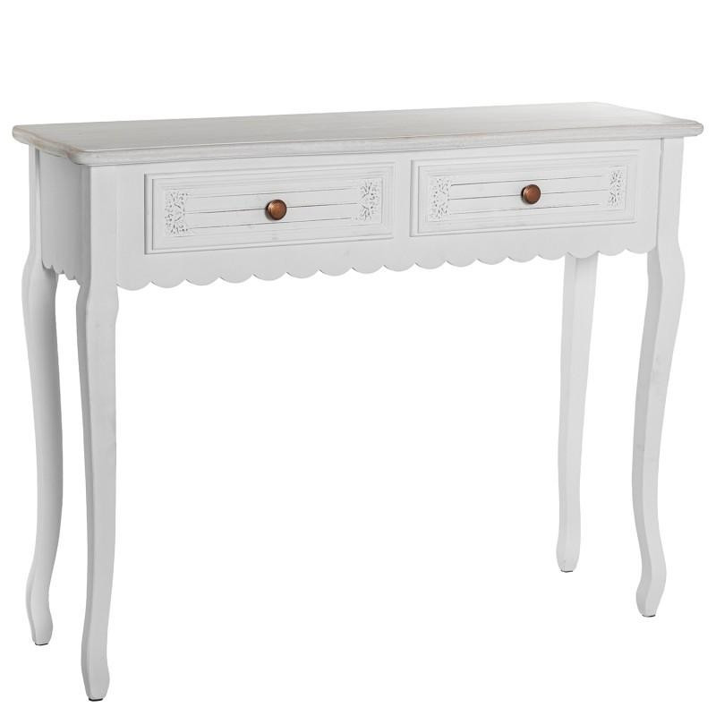 Mesa de entrada con 2 cajones de madera dm en blanco decape. Medidas: 100x30x78 cm