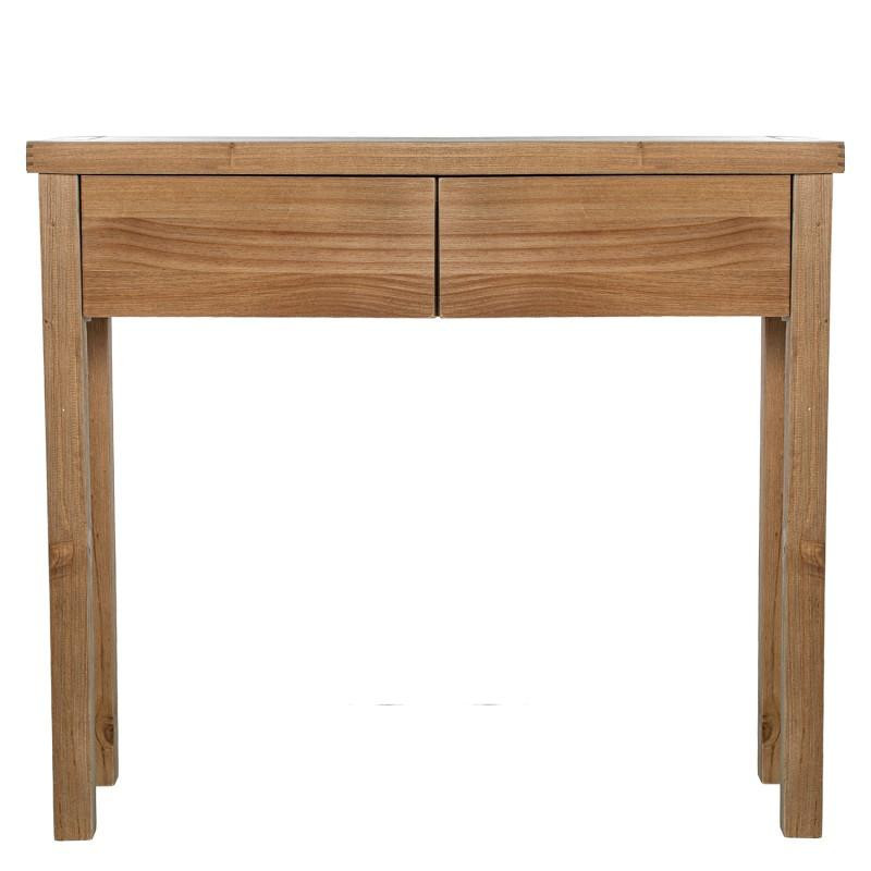 Mueble de entrada con 2 cajones de madera en natural. Medidas: 90x28x78cm