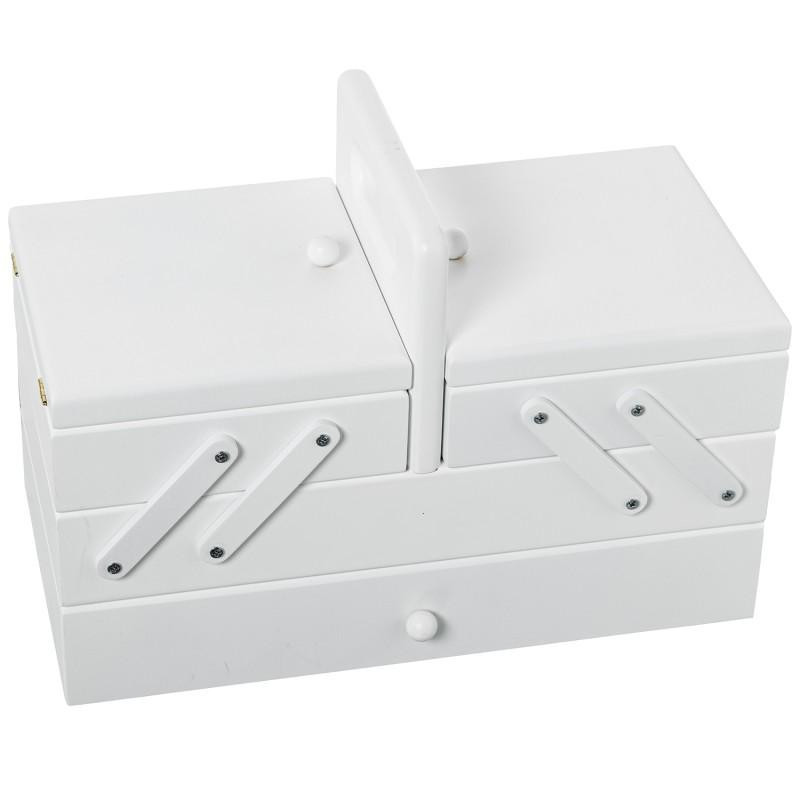 Costurero extensible tipo acordeon con cajon de madera blanco 23x33x16 cm