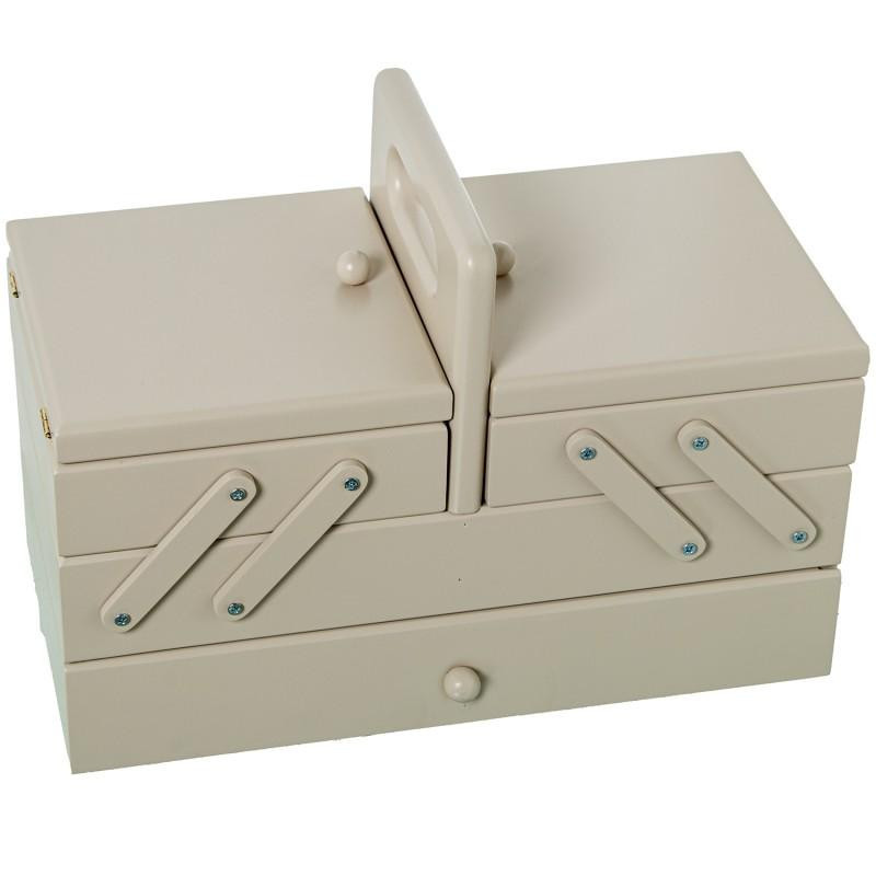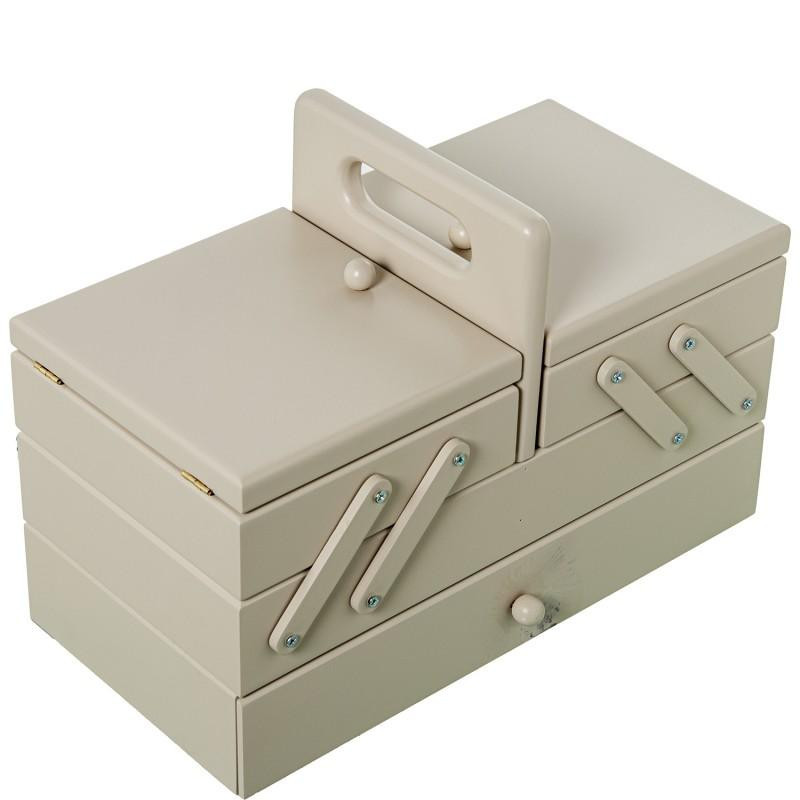 Costurero extensible tipo acordeon con cajon de madera color topo 23x33x16 cm