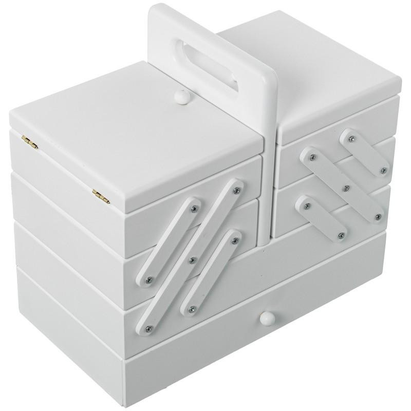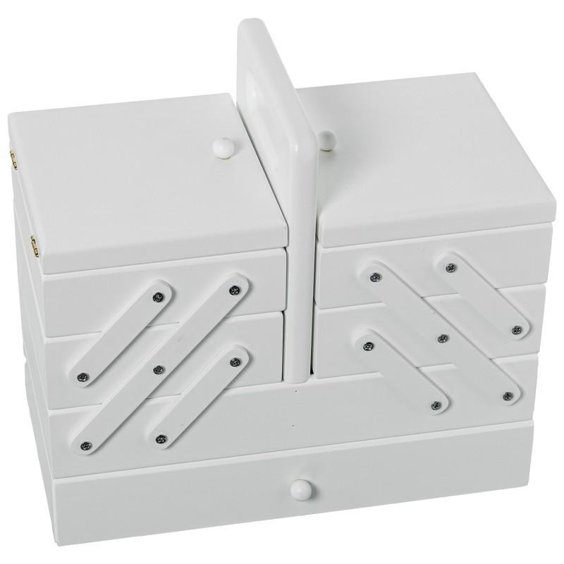 Costurero extensible tipo acordeon con cajon de madera blanco 26x28x15 cm
