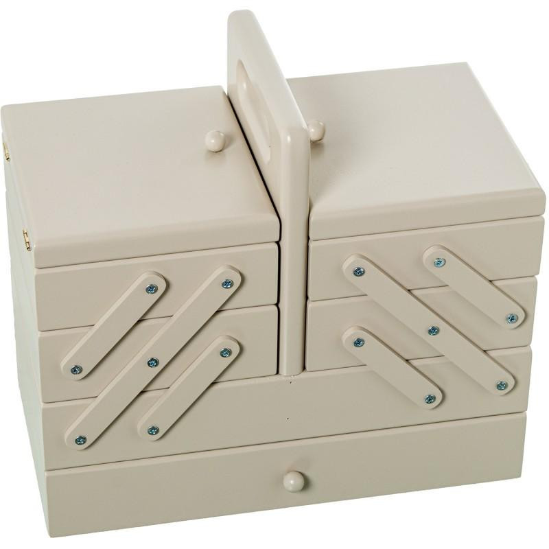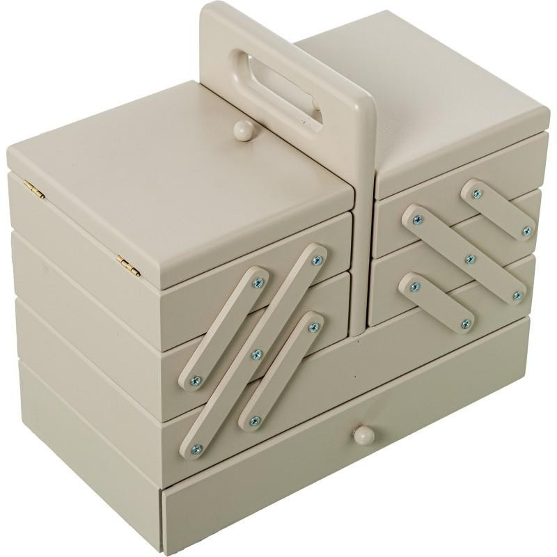 Costurero extensible tipo acordeon con cajon de madera color topo 26x28x15 cm