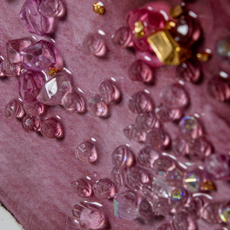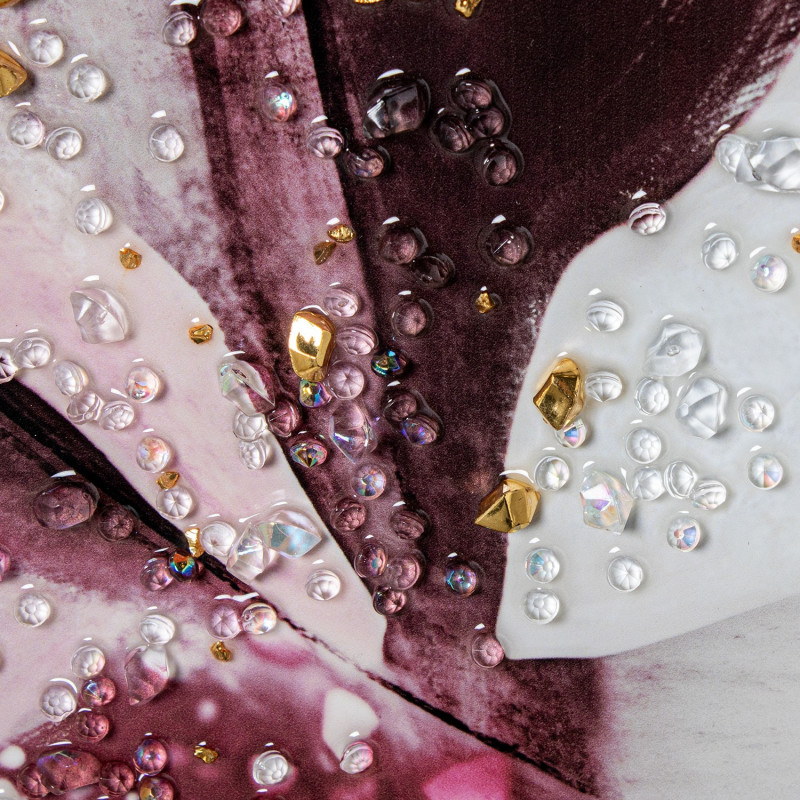 Set de 3 cuadros abstractos con marco de madera en rosa y blanco. Medidas: 53x4.2x63 cm