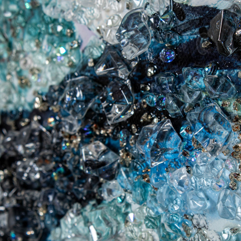 Set de 2 cuadros abstractos con marco de madera en azules y blanco. Medidas: 80x3.2x80 cm