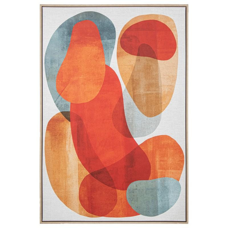 Cuadro lienzo abstracto y marco de madera en azul, naranja y rojo 82,6x122,6x4,3cm