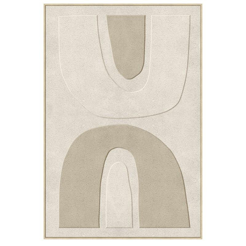 Cuadro lienzo con marco de madera abstracto en blanco y gris claro. Medidas: 80x120x3,5cm