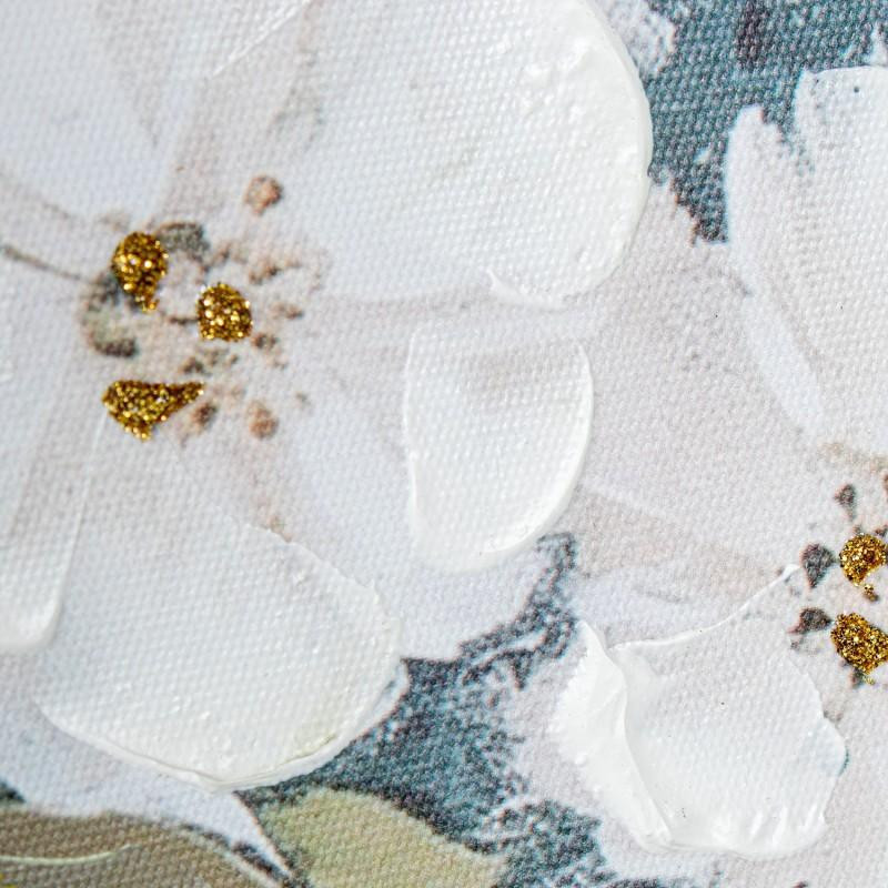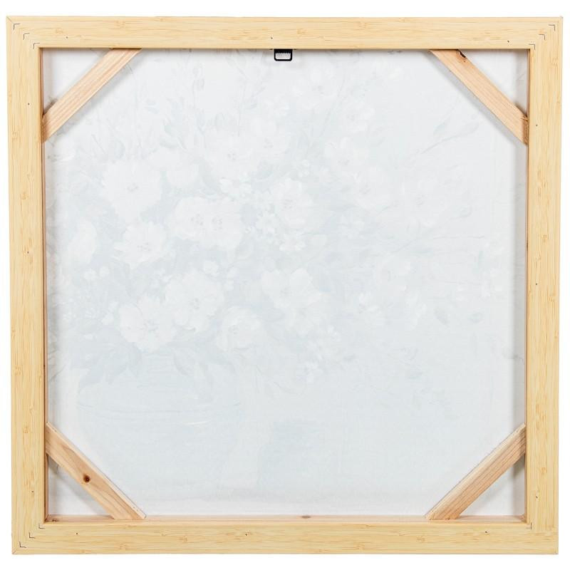 Set de 2 cuadros lienzo de unos jarrones con marco de madera natural en blanco, verde y azul. Medidas: 60x60x3.5 cm